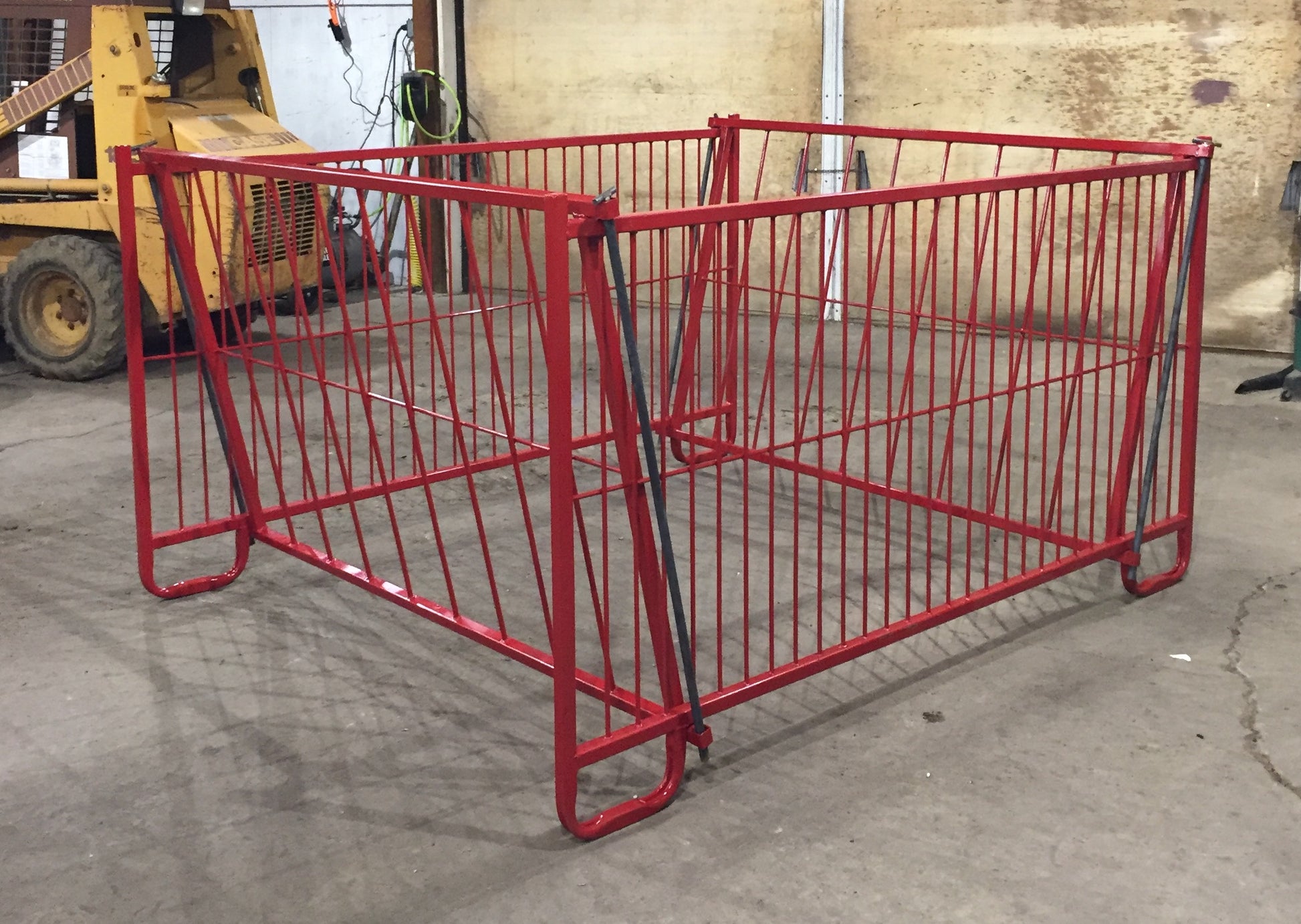 Brand new, sturdy, durable hay bale feeders that will provide years of dependable service. Collapsible sides on feeder utilize the whole bale and minimize hay waste. Feeders are made out of 14 GA steel, and pins together making it easy to setup and take apart.
